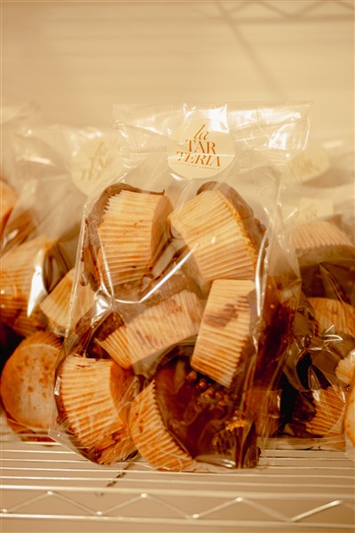 Magdalena de pueblo con aceite de oliva y huevo de campo.